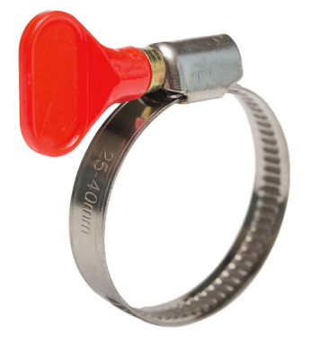 Хомут червячный с ключом (с бабочкой) — это изделие из нержавеющей стали марки W2, имеющее замок с наличием пластикового или металлического ключа. Хомут с ключом позволяет затягивать изделие без помощи отвертки, и применяется в местах, где часто необходимо снимать и затягивать хомут.