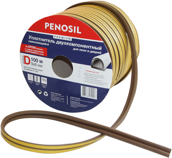 Двухкомпонентный бытовой уплотнитель самоклеящийся для уплотнения окон и дверей, гаражных ворот и металлоконструкций.Изготовлен из EPDM резины по технологии тонкого наслоения.