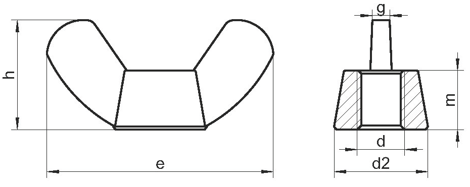 Гайки-барашки DIN 315 AF американский тип – изделие применяют для крепления разборных соединений, которые вследствие особенностей эксплуатации должны подвергаться периодической и частой разборке для обслуживания. Крепеж имеет форму усеченного конуса. Опорная база гайки, диаметром от 6,8 до 29,3 мм, обеспечивает более плотное прилегание к прикрепляемому элементу и позволяет избежать повреждения поверхности мягких деталей. Лепестки с двух сторон корпуса имеют форму вытянутой трапеции (американский тип). Высота их крайней точки над основанием от 8,8 до 31,2 мм при толщине лепестка от 1,2 до 7,2 мм. В сочетании с материалом изготовления – высоколегированной нержавеющей сталью марки А2 или А4 – конструкция гайки позволяет прикладывать значительные усилия для закручивания и откручивания крепежа, не опасаясь его деформации. Основное предназначение лепестков – обеспечить быструю разборку и последующую сборку крепёжного узла вручную, без использования специальных инструментов.