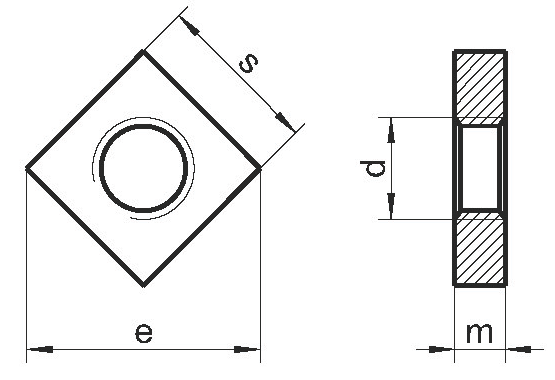 Квадратная гайка DIN 562 – плоский четырёхгранный метиз с внутренней резьбой от М1,6 до М10 и высотой от 1 мм до 5 мм. Нержавеющая гайка м8 выполнены из аустенитных сталей А2 и А4. Что обеспечивает им коррозионную стойкость в средах различной агрессивности, они практически не намагничиваются и экологески безопасны. Сплавы А4 не поддерживают коррозионные процессы со множеством кислотных и щелочных соединений из-за повышенного содержания молибдена (Mo до 2,5%).