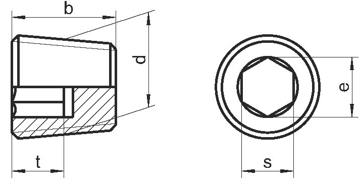 Пробка (или как ее еще называют, заглушка) представляет собой некое изделие с углублением под ключ в виде шестигранника. Коническая форма позволяет использовать его еще более эффективно. Пробка DIN 906 выполняется в двух вариантах – с конической мелкой метрической резьбой и с трубной дюймовой резьбой.