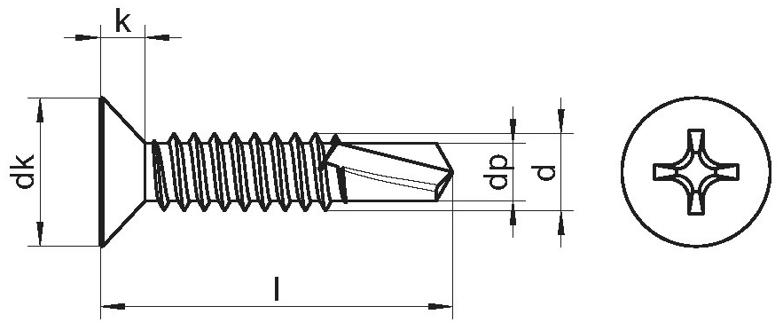 Конструкция метиза по DIN 7504 подразумевает сверлоконечный стержень с мелкой резьбой и головкой заданной формы. Такие саморезы наилучшим образом подходят для крепления конструкций из мягких металлов. А наконечник в виде сверла при вкручивании сам нарезает посадочное отверстие под шуруп даже в алюминиевых сплавах. Головка формы O выполнена в сечении представляет собой конус для установки под потай. Что обеспечивает установку данного винта заподлицо с плоскостью поверхности прикрепляемой детали. Для вкручивания самонарезающих сверлоконечных винтов DIN 7504 O H в основания из металла рекомендуется использовать шуруповёрт с насадкой PH (Philips) соответствующего размера. В мягкие материалы с предварительным отверстием допускается их монтаж при помощи стандартных крестовых отвёрток.