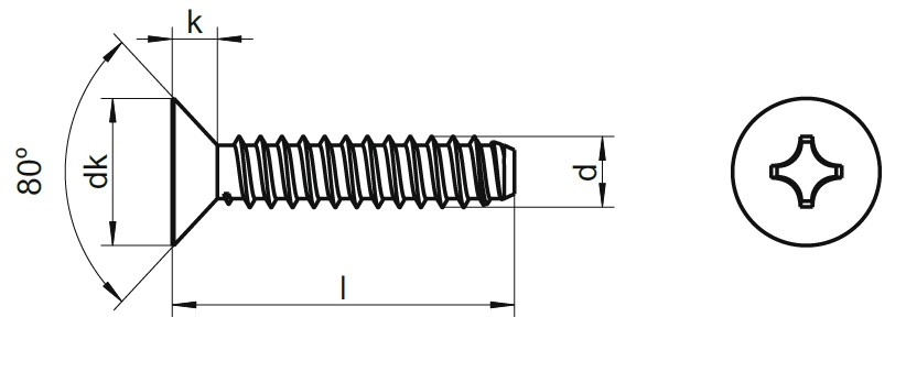 Саморезы с потайной головкой DIN 7982 FH представляют собой резьбовой стержень с тупым концом и плоской головкой под потай с крестообразным шлицем типа PH (Phillips). Такая конструкция резьбы требует обязательного производства предварительного отверстия соответствующего диаметра перед ввинчиванием изделия в основание. При этом рекомендуется использовать шуруповёрты или дрели с контролем крутящего момента и скорости вращения. Закручивание саморезов по DIN 7982 с тупым концом в мягкие материалы, например, различные виды дерева и пластмасс, допускает использование отвёртки с насадкой PH (Phillips), но только в предварительно сделанное отверстие.