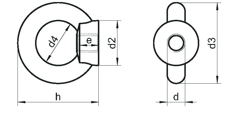 Наличие резьбы позволяет накручивать рым-гайку на метизы штыревого типа, обеспечивая при этом достаточную надежность соединения. Подобный крепеж отличается не только предельной простотой конструкции, но и способностью переносить значительные нагрузки в процессе транспортировки или вывешивания разнообразных грузов.