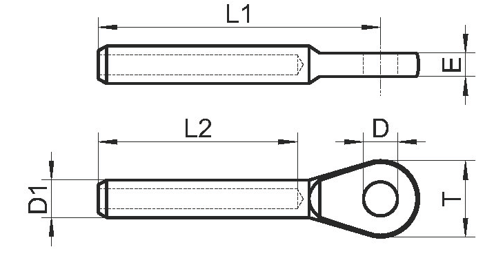 | Для троса Ø | L1 | L2 | E | D | T | D1 | Материал |