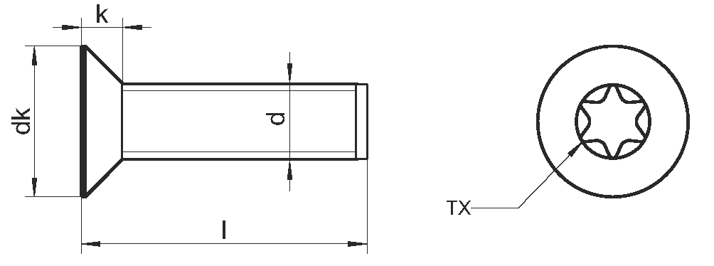 Крепежный винт ME DIN 7500M TX с потайной головкой со шлицем «звездочка» (TX, TORX) представляет собой защитную модификацию винта ME DIN 7500M PZ под крестовую отвертку. Конструкция метиза представляет собой стержень с полной метрической резьбой с закалёнными острыми гранями. Такое конструктивное решение обеспечивает эффективное самостоятельное создание резьбы в металлических отверстиях и формирование прочного и надежного скрепления деталей. Из-за этих уникальных качеств, крепежные винты еще называют самонарезающие или резьбовыдавливающими. Потайная головка с антивандальным шлицом беспроблемно устанавливается «заподлицо» в рассверленное отверстие (потай).