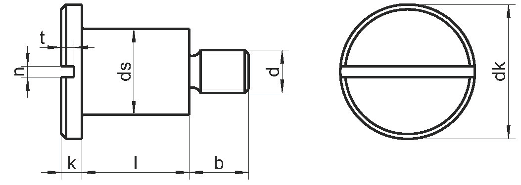 Нажимной винт с цилиндрической плоской головкой DIN 923 является уникальным крепежным элементом нестандартной конструкции. Метиз имеет три ступеньки представляющих собой: короткую цапфу с метрической резьбой (длина от 4 до 11 мм), более утолщенный и длинный подголовник и плоскую цилиндрическую головку с прямым шлицем. Данные винты позволяют формировать быстроразъемные соединения между деталями с надёжным и плотным прижатием скрепляемых деталей. Установка винтов с плоской головкой и прямым шлицем выполняется стандартными плоскими отвертками или при помощи электроинструмента.