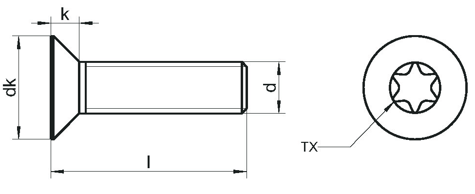 Винт с потайной головкой DIN 965 TX изготавливают в виде стержня с метрической резьбой и конической головкой с антивандальным шлицем TORX («звездочка»). При установке метиза заподлицо в материал с достаточно твердой структурой, например, в сталь или другие металлы, выполняют рассверливание отверстия под потай – зенкование. Более мягкие материалы потайная головка винта DIN 965 продавливает самостоятельно и становиться вровень с поверхностью. Крепеж допускает монтировать в резьбовые отверстия или формировать резьбовые соединения посредством накручивания нержавеющих гаек. Завинчивание винтов с потайной головкой DIN 965 TX выполняют при помощи ручного и электрического инструмента с насадками TORX (шестилучевая звезда или «звёздочка»).