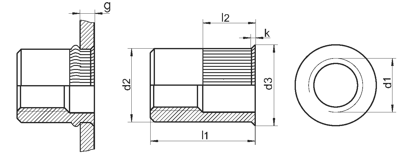 Применение: Предназначены для создания неразъемного соединения тонколистовых материалов, а также для образования соеденяемых листовых материалах элемента крепления с внутренней (заклепка-гайка) или наружной (заклепка-болт) метрической резьбой.
