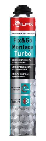 SILFIX Fix&Go Montage Turbo строительно-монтажный клей-пена - это готовый к применению, быстросохнущий, однокомпонентный полиуретановый клей в аэрозольной упаковке, имеющий высокую адгезию.